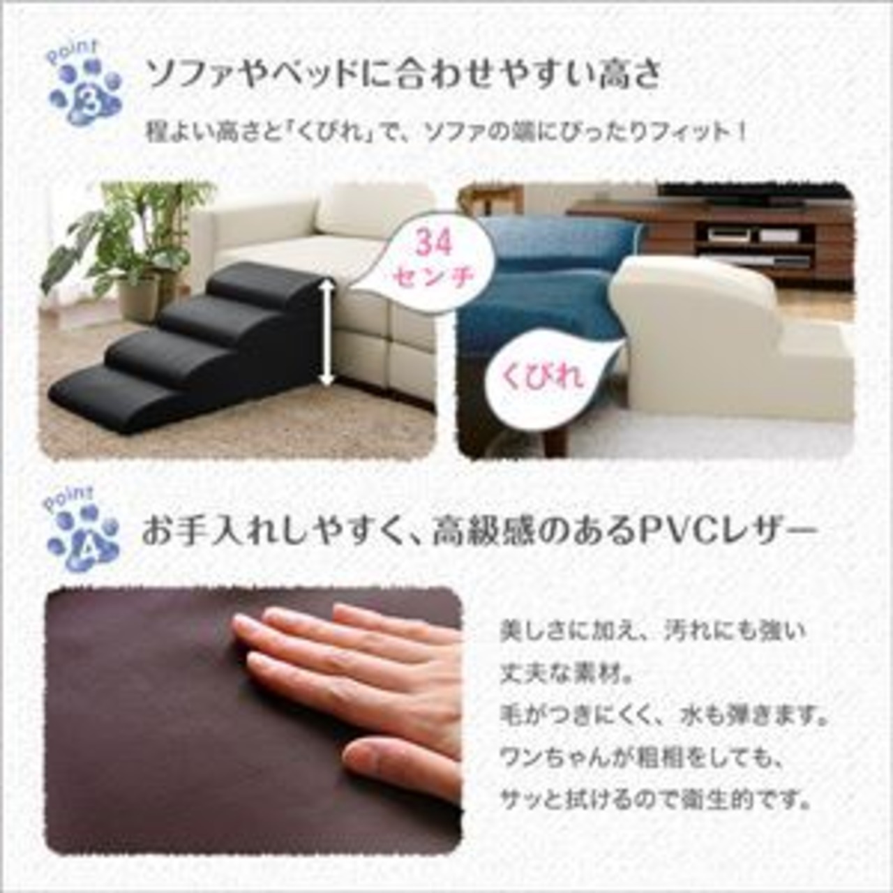 日本製ドッグステップPVCレザー、犬用階段2段タイプ【lonis-レーニス-】