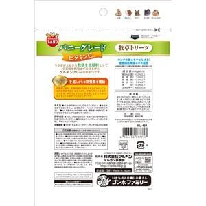 ■原材料牧草(アルファルファ、チモシー)、ホミニーフィード、えん麦、トウモロコシ粕、米糠、タピオカ澱粉、ブドウ糖、食物繊維、植物抽出発酵エキス、大麦若葉、ケール、ブロッコリー、かぼちゃ、チンゲン菜、パセリ、ニンジン、セロリ、ゴーヤ、ほうれん草、桑の葉、モロヘイヤ、よもぎ、トマト、ビタミンC